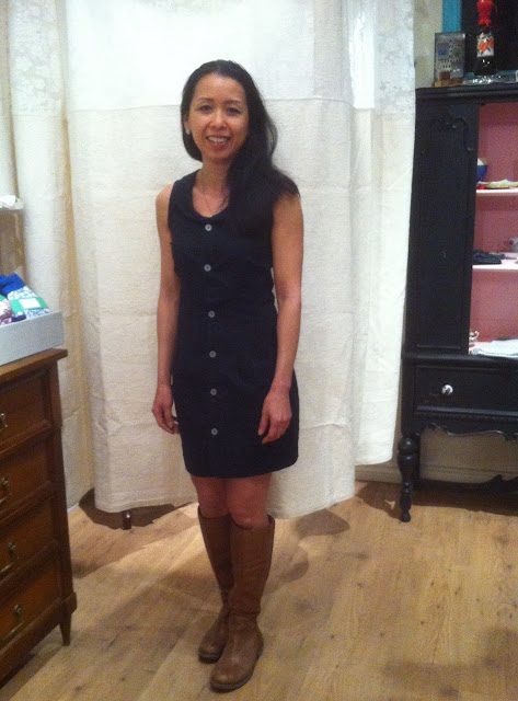 | sneak appearance by the beautiful Kyla, wearing a koocoo cotton skirt, atelier-b lyocell top, koocoo linen scarf and Rae Designs brooch |